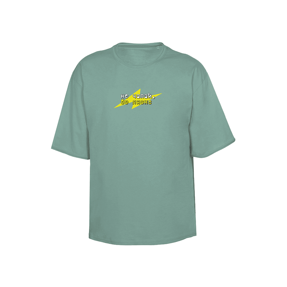 Футболка оверсайз "Не чапай, бо лясне!" унисекс, пыльно-бирюзовый,  M-L