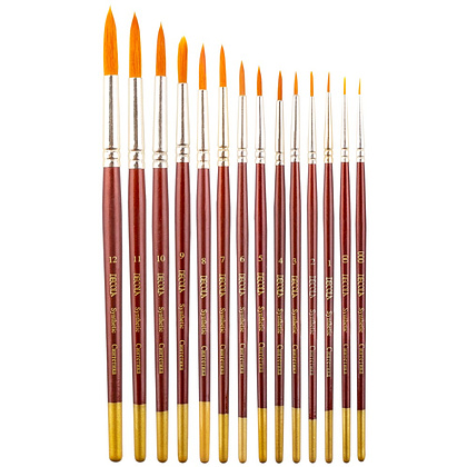 Кисти из качественной синтетики, средней жесткости, отличаются высокой упругостью и эластичностью, универсальны в использовании – подходят для гуаши, масла и акрила.  Средняя жесткость волоса гарантирует бережное отношение к декорируемой поверхности при использовании в хобби техниках, а густой волос позволяет удерживать большое количество краски или лака. В зависимости от размера пучка используются как для прорисовки мелких деталей, так и для выполнения крупных деталей и заполнения фона. Также часто используются в  хобби техниках – таких как декупаж, роспись по ткани, батик, роспись по керамике и т.д.