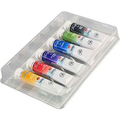 Профессиональные художественные акварельные краски «Белые ночи» представляют собой тонкодисперсные суспензии пигментов и наполнителей в связующем, в состав которого входит водный раствор растительного клея – гуммиарабика. Все акварельные краски в палитре «Белые ночи» безопасны, сертифицированы и соответствуют стандартам ASTM D-4236. Высокая концентрация пигмента обеспечивают максимальную интенсивность цветового тона акварели. Насыщенность сохраняется даже при разбавлении большим количеством воды. Отличаются прозрачностью, что дает возможность художнику работать тонкими лессировками. Чистые цвета позволяют писать в смесях и получать богатое многообразие оттенков. Основная часть красок обладает высочайшим показателем светостойкости, что способствует сохранности работ свыше 100 лет. Все это обеспечивает их высокое качество и возможность использования в ответственных работах. Набор акварельных художественных красок "Городской скетч" "Белые Ночи" 6 туб 10 мл в пластиковом коррексе. Палитра цветов набора: Индийская золотистая (244) Алый хинакридон (385) Ультрамарин темный (521) Голубая (513) Травяная зеленая (716) Серая Пейна (812)