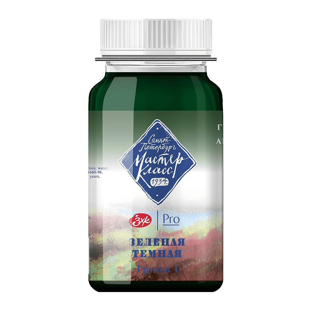 Краски гуашевые "Мастер-класс", 710 зеленая темная, 100 мл, банка
