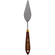 Для нанесения масляных и темперных красок на холст, работы с текстурными материалами. Также используются для очистки палитры от краски. Небольшие мастихины – для проработки мелких деталей, геометрической формы – для создания четких линий. Мастихины для смешивания красок отличаются отсутствием изгиба возле ручки. Лопатка изготовлена из нержавеющей стали. Ручка деревянная покрыта лаком.
