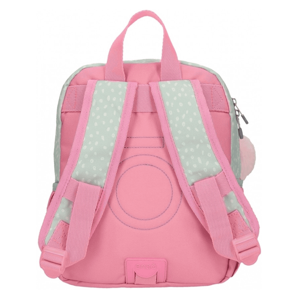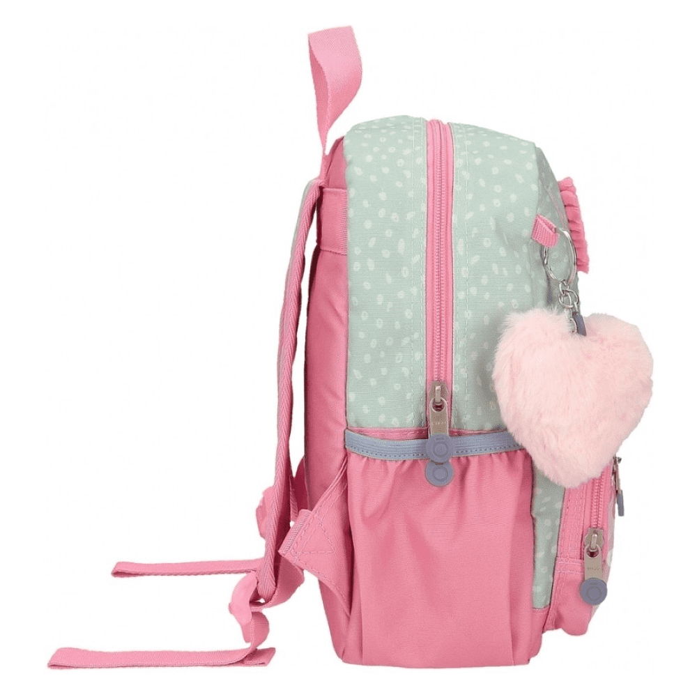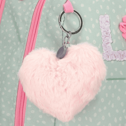 Яркий розово-зеленый принт символизирует весну, радость и бесконечные дни в парке, а также напоминает о любимом лакомстве — мороженом. Завершает дизайн симпатичный брелок с помпоном в виде сердца, который придает рюкзаку игривый и очаровательный вид.