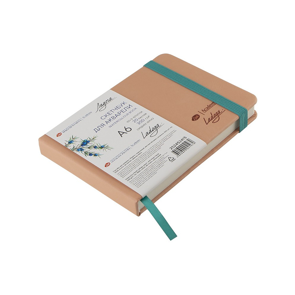 Скетчбук для акварели "Ладога", А6, 100% хлопок, 300 г/м2, 20 листов, персиковый