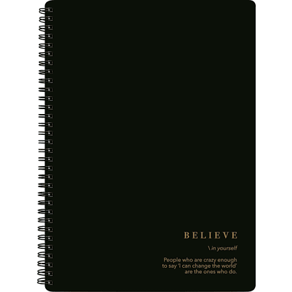 Тетрадь "Believe", A4, 96 листов, клетка, спираль сбоку, черный